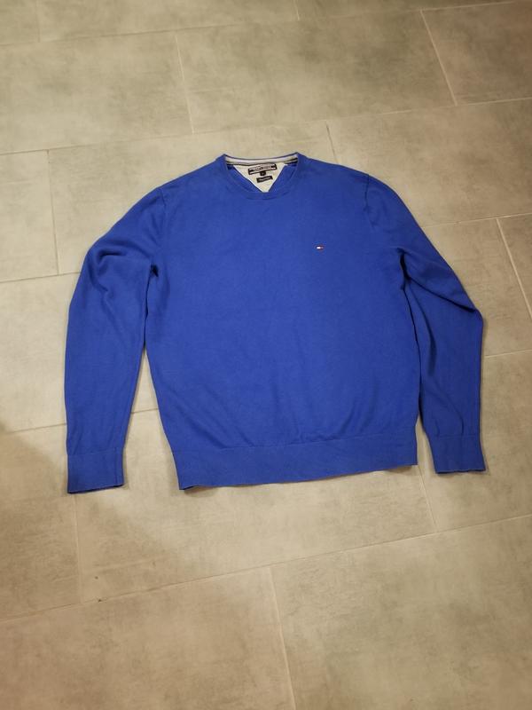 Оригинальный очень качественный, брендовый свитер Tommy Hilfiger. Стан идеальный, незначительные следы ношения, синего цвета. Очень качественная и приятная на ощупь материя. Оригинальный, сток из заграницы. состав: 90% pima cotton 10% wool Размер XXL 52 54 Замеры: Плечи - 45 см; Рукав - 69 см; Полуобхват груди - 57 см; Длина - 70 см