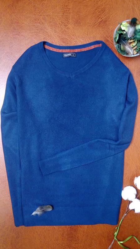 Легкий свитер. Длина-70 Ширина-56 Длина рукава от плечевого шва-65 Возможна погрешность в 1-2см Телефон искажает синий цвет, на фото №1 цвет максимально приближен к оригинальному.