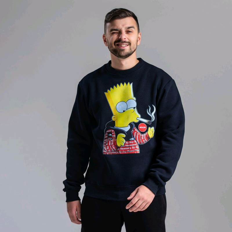 Теплий темно-синій світшот на флісі з принтом з сімпсоном