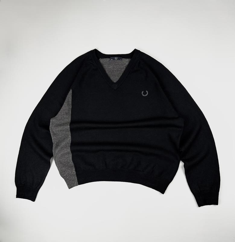 Оригинальный мужской свитер Fred Perry Дизайн похож на коллаборацию с Raf Simons Вышитый лавровый венец на груди V-образный вырез Выполнен из 100% шерсти Состояние отлично/без дефектов Размер L Замеры: Длина 69см Груди 57см Рукав от горла 78см