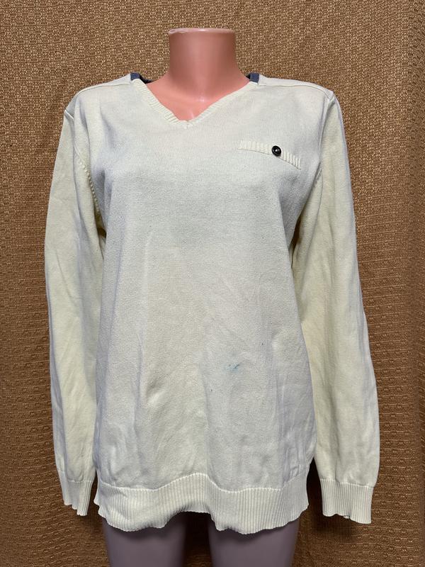 Красивый фирменный свитер от качественного бренда redoute/ Подойдет и мужчине и женщине но больше свитера мужского фасона/ Подойдет на см л европейский ориентируйтесь по замерам/ Длина 67 см/ Плечи 44 см/ Рукав 68,5 см/ Пог 55,5 см/ Пот 51 см/ Знизу 48 см/ Из нюансов/ есть пятна от ручки и немного застегивается на фото все видно/оценено недорого/ Продается без возврата/ Цвет как на втором фото/