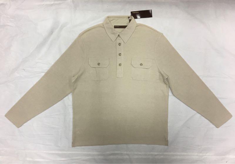 Виробник: Perry Ellis Тип одягу: Кофти На допомогу армії Кофта поло з довгим рукавом американського бренду Perry Ellis, виконаний у бежевому кольорі, виробництво Китай, матеріал 60% бавовна, 40% поліестер, обробка (комір, кишені, налокітники) - 100% бавовна! Комір на 4-х ґудзиках, 2 нагрудні кишені на ґудзиках, низ кофти з бічними розрізами по 3 см, є запасний гудзик! Розмір: US (XL) : ПОГ - 61 см, довжина (перед) - 68 см, довжина (спина) - 75 см, рукав - 68 см, плечі (ПШ) - 50 см, комір - 44 см. Заміри довжини спереду дані від верхнього гудзика, зі спини - від шва ворота, рукавів - від шва плеча, плечі - відстань між швами плечей!
