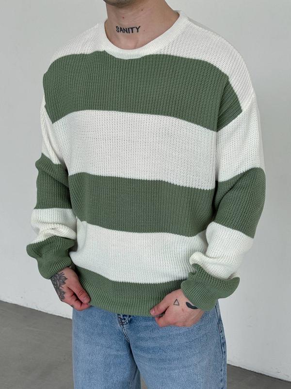 Стильный вязаный оверсайз свитер в полоску (мятно-белый цвет )🔝 - Материал: 40% шерсть, 30% акрил, 30% вискоза - Made in Turkey 🇹🇷 , топ качество🔝 Размеры: S, M, L, XL (полмерные, оверсайз крой ) На фото размер S: ❗️Параметры парня на фото: Рост-178см Вес - 74 кг