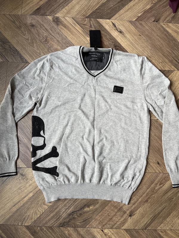 Мужской свитер,идальное качество,новый Принт череп у стразах