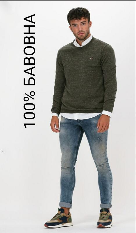 Бренду tommy hilfiger, оригинальный мужской свитер, оливкового цвета, хлопковый.