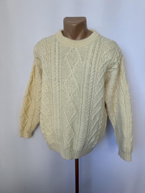 British wool свитер белый кремовый косы араны британия шерсть шерстяной тёплый обьемный