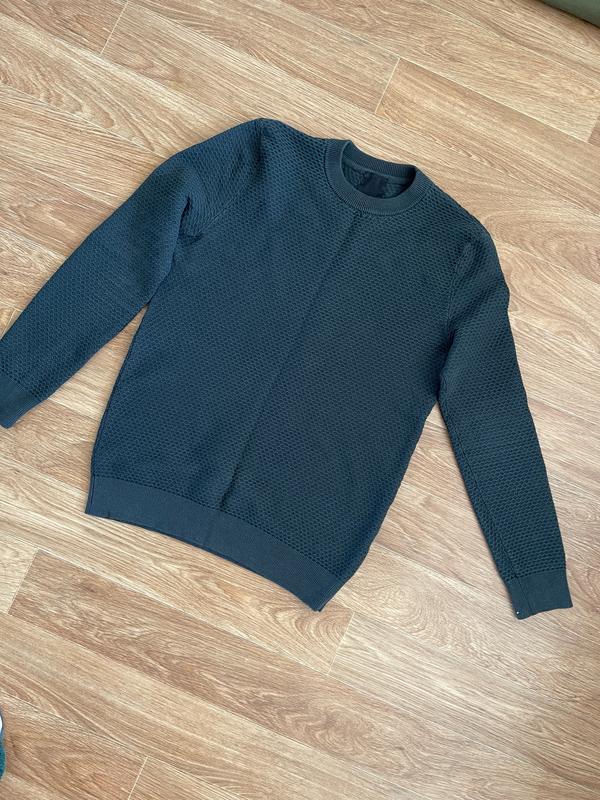 Мужской свитер от бренда H&M Цвет - темно-зеленый (как на первом фото) Состав - полиэстер + эластан, хорошо тянется Размер - XS/S Пог - 49см(+/-10см) Ширина плеч - 39см Длина рукава от плеча - 60см Длина изделия от плеча - 64см Стан хороший