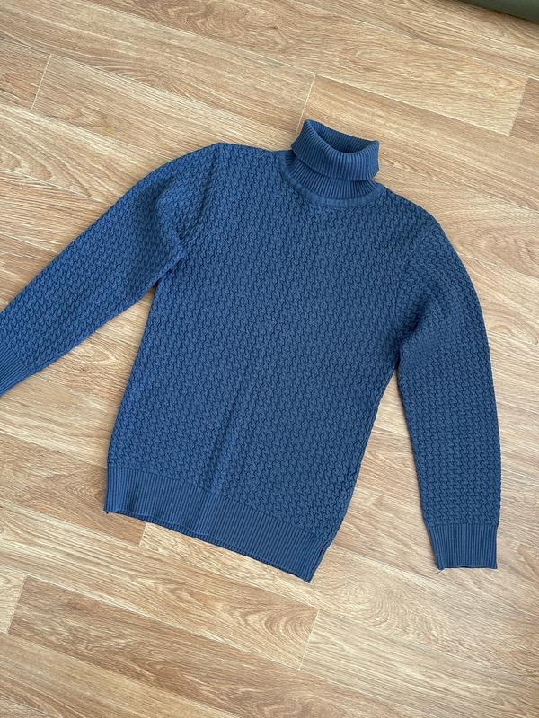 Мужской синий свитер Состав - полиэстер + эластан, хорошо тянется Размер - M (но маломерит на S-XS) Пог - 42см(+\-10см) Ширина плеч - 37см Длина рукава от плеча - 53см Длина изделия от плеча - 61см Стан - идеальный
