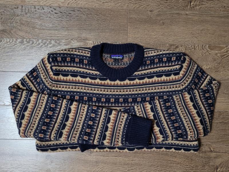 Свитер американского премиум бренда Patagonia, цвет сочетание: темно-синего, бежевого и коричневого, состав:70% шерсть,26% нейлон,4% другие волокна, производство Вьетнам, размер S(может быть на М), замеры (п/обьн56, плечи 47, длина рукава по внешнему шву 71,по внутреннему 53, длина изделия 69.5). Состояние новой вещи.