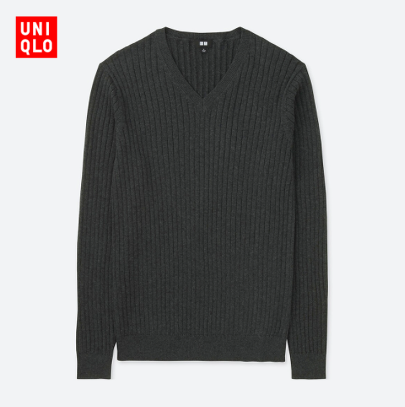 Свитер Uniqlo с кашемиром М’який, теплий класичного фасону светр в рубчик Цвет - темный серый Размер L ширина 52 см длина 65 см рукав 66 см
