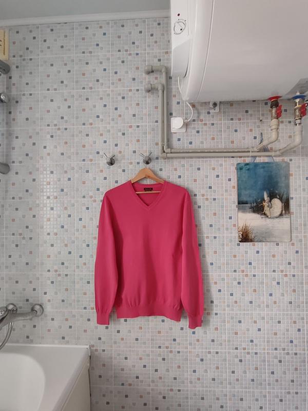 Оригинал, состояние нового, без дефектов. Качественный трикотаж. ПОГ 56,низ резинка 41,плечи 47,длина рукава 66, длина 71. Цвет фото искажает, на тон светлее.