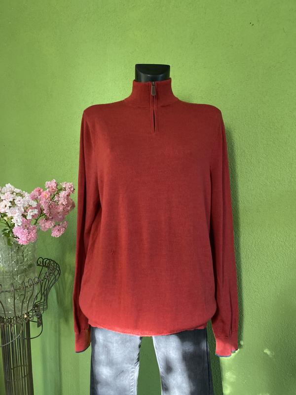 Очень качественный свитер с актуальным врагом из тонкой шерсти от британского бренда White Stuff. Склад-вовна-100/. Это та шерсть, которая не создает «какашки». Великолепный цвет. Розмвр по бірці-XXL. Замеры: длина-72 см, ПОГ-53 см, ПОБ-44 см, рукав от ворота-80 см.Нажаль, есть дирочка (см. 2 последних фото-спереди на уровне живота). Учтены в цене.