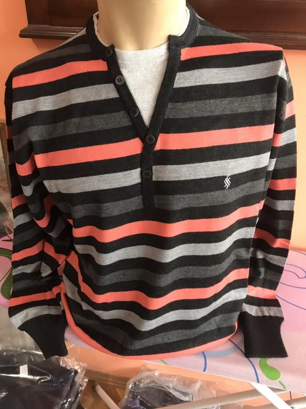 Состав: 50% шерсть, 50% акрил. Производство Турция код товара 92447 Цвет: серо розовые полоски. Размеры: Л Замеры: Л: пог 60см, плечи 52см, длина рукава от шеи 78см, длина 70см