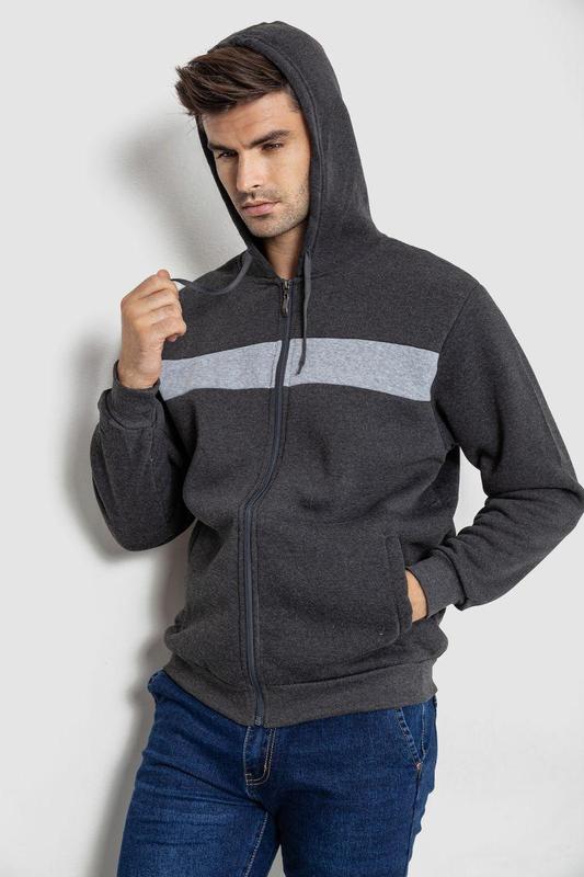 Кофта чоловіча на флісі з капюшоном, колір темно-сірий, 244r2559