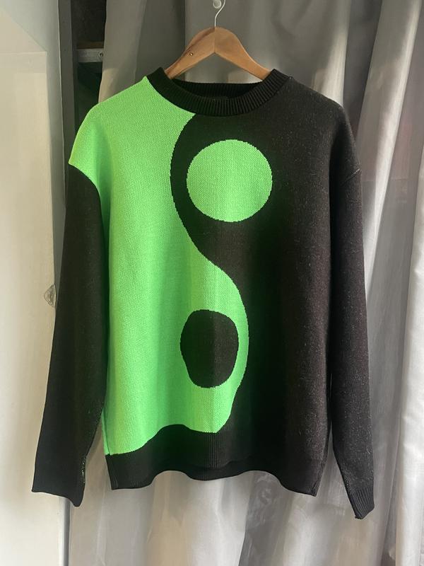 Чорно зелений светр інь янь чоловічий оверсайз