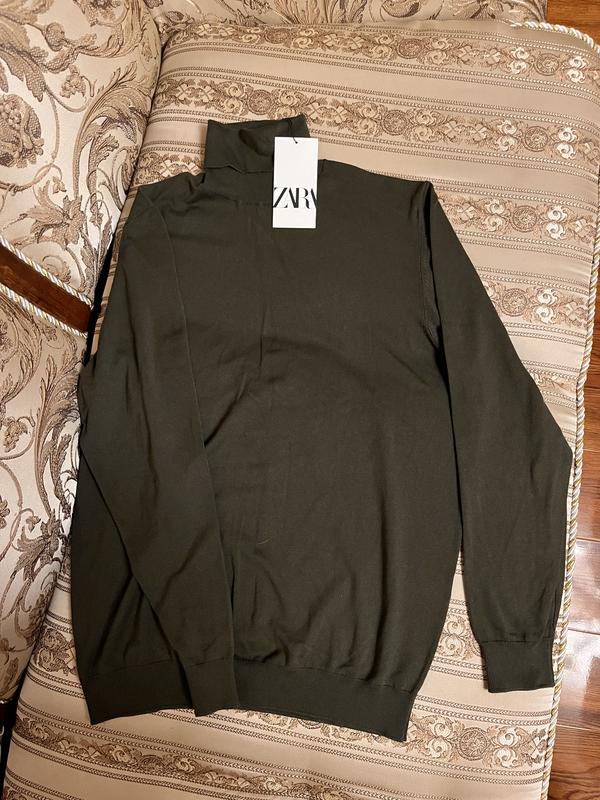 Свитер воротником водолазкой, длинными рукавами и окантовкой в рубчик. Смешанная штапельная ткань с вискозой.L размер. В профиле есть фото такого свитера, но синего там есть как смотрит на модели