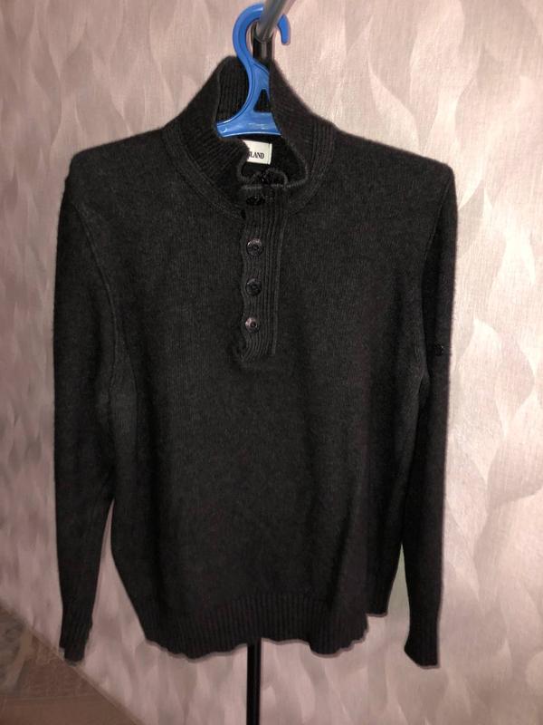 светр свитер Stone Island темно - серый, оригинал, шерсть, от нижней бирки осталась только размерная, сайх XXL, верх на молнии и пуговках, высокий ворот, патча нет, состояние отличное плечи 43, под мышкками 59, рукав 64, длина 66 см