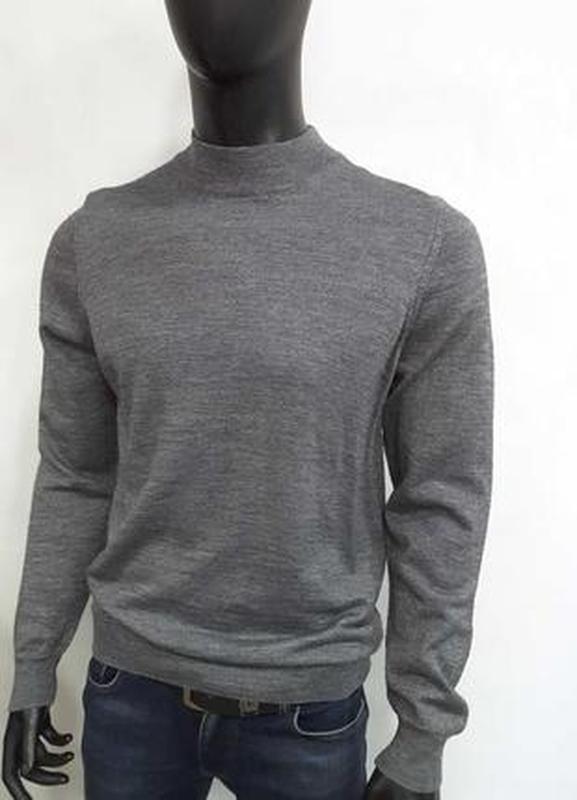 Розмір: 42/XL/50 44/XXL/52 Гарний елегантний сірий колір, злегка меланжований светр гольфу. Чудовий склад трикотажу 50% вовни, злегка приталений, добре облягає фігуру. Середньої висоти стійка. Чудово підходить як під піджак, так і до джинсів. Замеры на XL 2XL Півобвід по грудях 56 59 Довжина виробу 76 79 Довжина рукава від горловини до низу манжета 82 86