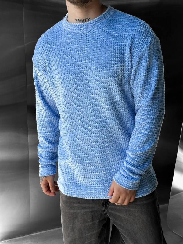 Чоловічий блакитний в'язаний стильний светр без коміра для хлопця