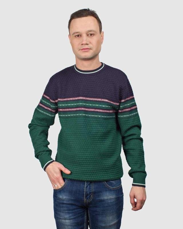 Мужской джемпер VIP Stendo темно зеленого цвета. Низ и рукава имеют эластичные манжеты.