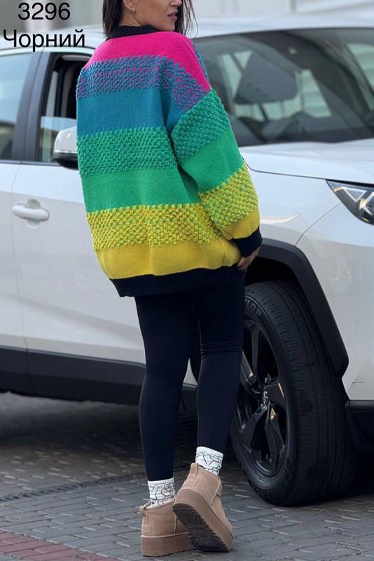 Яркий и сочный. Плотная вязка за счет которой свитер ДуУУДe теплый. Красиво тянется. Длина изделия - 72 см. Длина рукава - 47 см. Ширина плечей - 66 см. НОГ - 65 см. Низ - 54 см.