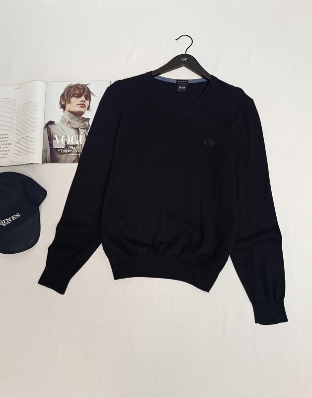 темно синий свитер Hugo boss свободного кроя с манжетами, ткань 100% коттон, размер S, ПО груди 53 см, длина 65 см, рукав 67 см