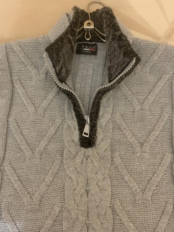 Продам чоловічий якісний зимовий светер з крупною вʼязкою. Купували для зимових походів. Колір - в тон зими- світло- сірий. Від середини грудей -під шию застебується на крупну блискавку, що робить вироб ще цікавішим. Оздоблення вздовж блискавки і ворота- штучне хутро. Довжина рукава від плеча- 60 см, ширина в плечах- 47 см. Склад: акріл-70%, бавовна- 30% Виробник Турції, розмір - L-XL
