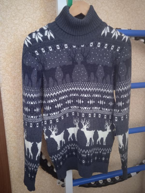 Свитер в новогоднем стиле,серого цвета, состояние идеальна, одевался лишь раз в новый год, очень теплый, приятный к телу. Подойдет на подростка или мужчины размера L.