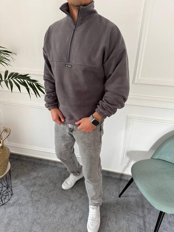 Кофта мужская на флисе тепла свитшот стильный оверсайз флиска с замком черная серая бежева...