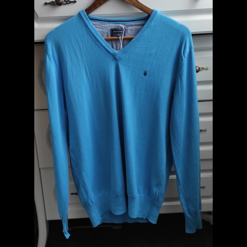 Светр Reserved в гарному блакитному кольорі, розмір М, але підійде на S і на невеликий L, орієнтуйтеся по замірах нижче. Нова, без дефектів. Склад тканини 100% бавовна, кошлатитись не буде. Заміри: довжина 69 см, ширина плечей 47 см, довжина рукава 67 см, напів об'єм грудей 55 см. Пересилаю Новою поштою і Укрпоштою, в тому числі і через безпечну оплату.