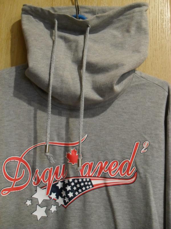 Стильный свитер свитшот серого цвета. 100% хлопок. Ворот хомут стягивается шнурком, спереди большой карман. Состояние очень хорошее-не рваное, без пятен. Производство Италия. Размер 48-50. Ткань немного тянется как обычный х/б трикотаж. Замеры: ПОГ 52 см., ПОБ 50 см., плечи 45 см, длина рукава 63 см, длина по спине от ворот 66 см., высота хомута 26 см.