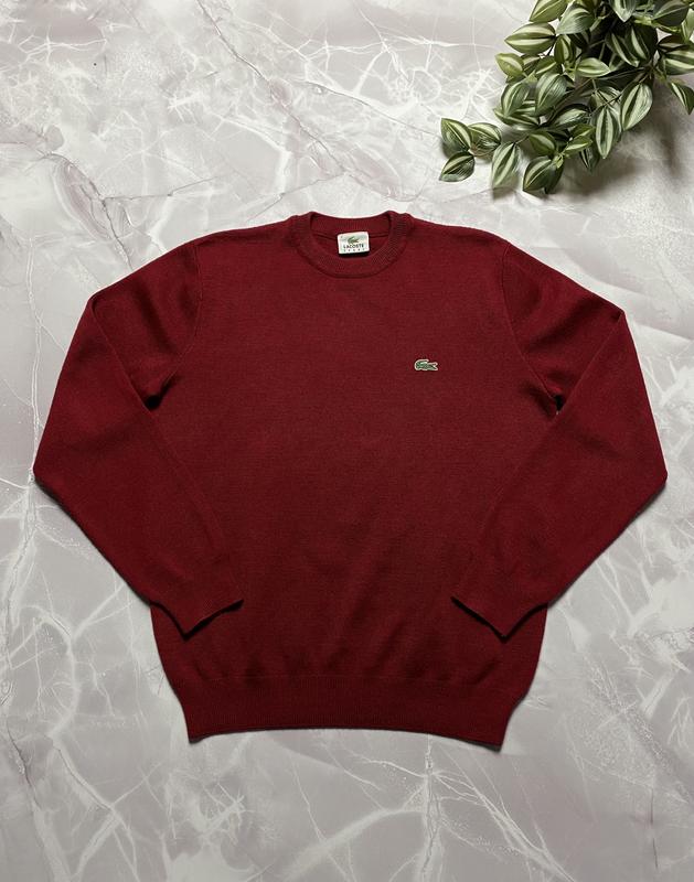 Качественный свитер от Lacoste в красном цвете Вышитый фирменный логотип в левой части груди Круглый вырез, рукава и низ на манжетах Материал 50% шерсть, 50% акрил СТАН замечательный, без дефектов РАЗМЕР М 4 ЗАМІРИ: Плечи - 44 см Рукав (от плеча) - 62 см Ширина (подмышками) - 54 см, тянется до 58 см Длина (от шеи) - 65 см