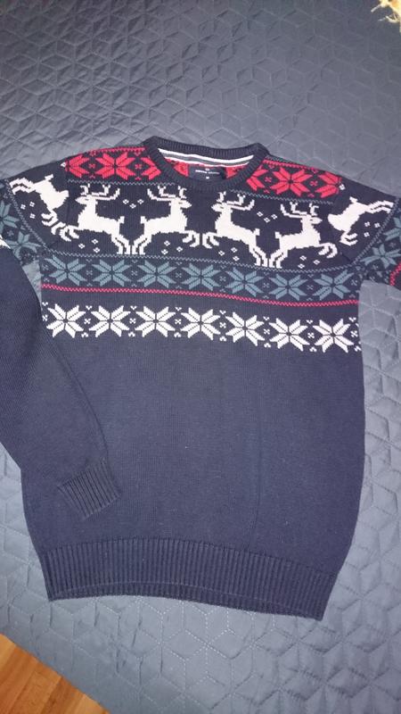 Симпатичный, качественный, мужской свитер в зимней тематике. Бренд House. Размер М. 💯 % хлопок. Производство Бангладеш. П/о груди-50, длина по спине - 68,длина рукава - 67,плечи-46см.Цвет-темно-синий ,рисунок-красный,серый,голубой. Состояние хорошее.