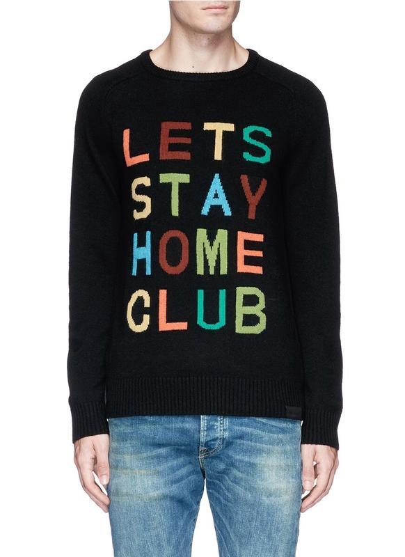 Этот свитер от Scotch & Soda создан для тех, кто ценит комфорт. Легкие рукава реглан идеально подходят под зимние куртки. Черный трикотаж из смеси шерсти, лозунг «Lets Stay Home Club», круглый вырез и ребристая отделка. Длина - 65 Ширина - 45 70% - вовна
