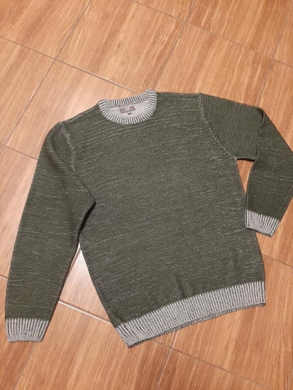Теплый неколлирующий зеленый свитер, плотный трикотаж.Размер L. Замер: плечи 46см, пог 54см, длина 70см, рукав 63см.