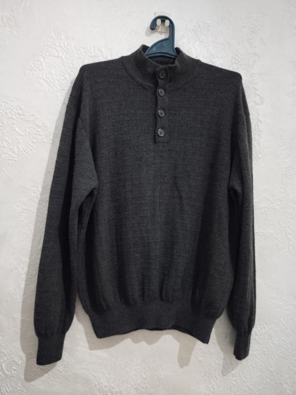 без ньюансов из 100% мериносовой шерсти , хорошо тянется , не колется , грудь 70, длина 74, длина рукава от ворота 85