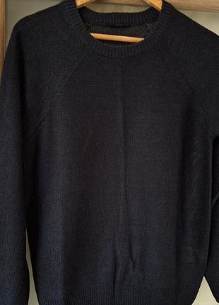 Трикотажный, отлично подойдет под рубашку и классические брюки или джинсы. Замеры: длина 65 см, ширина по плечам 45 см, в груди - 52 см, рукав 65 см