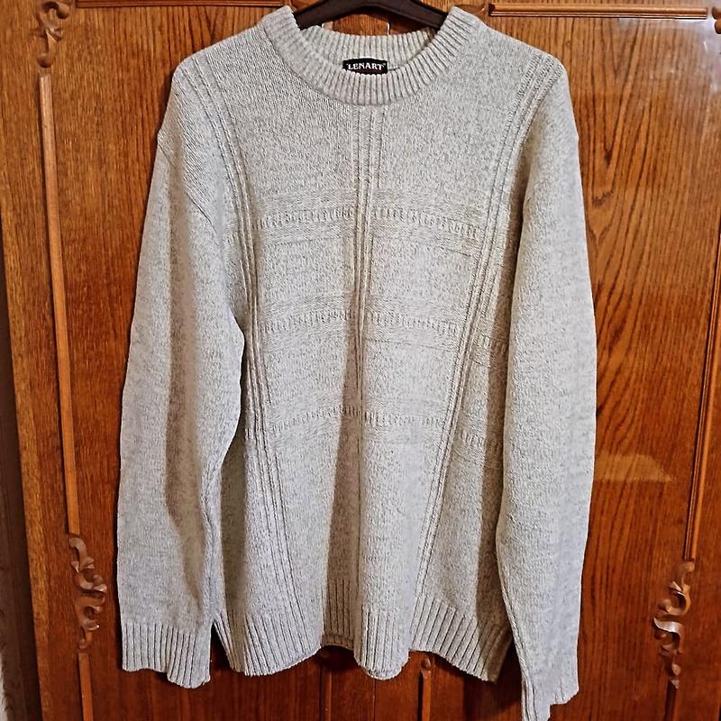 Тёплый брендовый свитер по составу шерсть с полиакрилом цвет беж слоновой кости меланж в принте геометричной вязки плотный по качеству без нюансов.Дл.74 Пл.66 Б по 22+Ог120-135 Об 110-130манжет тянется 👍