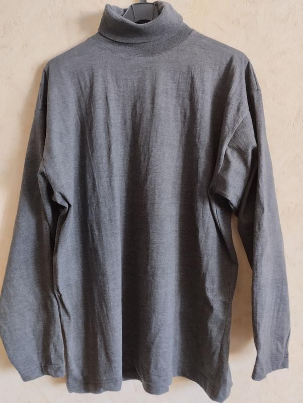 В идеальном состоянии коттоновый гольф серого цвета. Пишется размер L, но он большемерит. Идет на ХL. Немного тянется, мягкий.