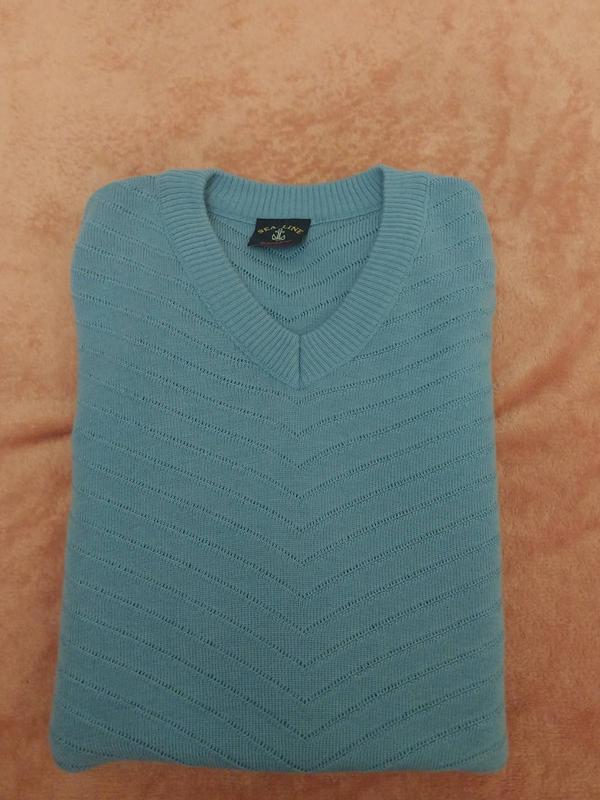 Мужской свечер на весну -осень, красивый состав 60%-шерсть,40%-акрил, интересная вязка, не толстый, цвет - голубой, как на последнем фото но светлее, не бирюзовый классический голубой (камера не передает), ПОГ - 61 см, длина - 72 см,плошно- 16 см,рукав- 69 см, стан нового