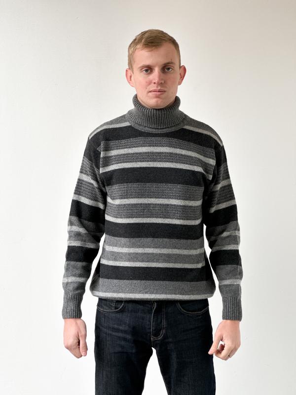 Мужской свитер в полоску с высокой горловиной серый (m, xl)