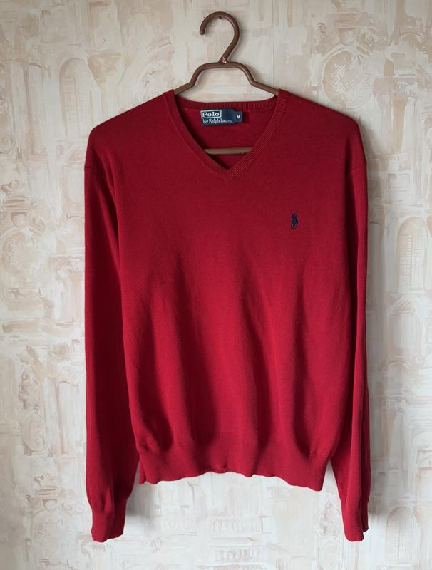 Красный джемпер оригинал с V-образным вырезом, очень приятный к телу