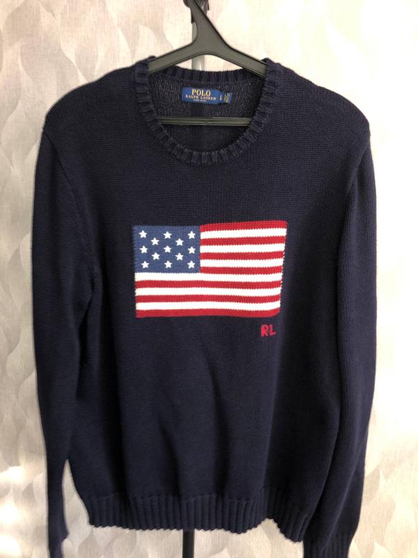 свитер Polo Ralph Lauren синий с американским флагом, размер L, USA плечи 47 см, под мышками 56 см, длина рукава 73 см, длина 70 см