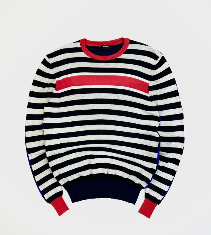 Оригинальный мужской полосатый пуловер Diesel Made in Italy Состояние замечательное / без недостатков Размер L Замеры: Длина 73см Груди 53см Плечи 50см Рукав 72см