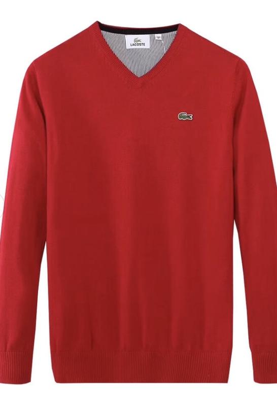 Виконаний у прямому фасоні, тому не обмежує рухи під час носіння. Має V-подібний виріз і на рукавах та поясі оброблений еластичним дов'язком. Цей светр є однотонним і на передній, і на задній частині, а як декор виступає лише невелика нашивка, на якій зображено логотип бренду. Колір: червоний Розмір: XXL Код товара 8980-1