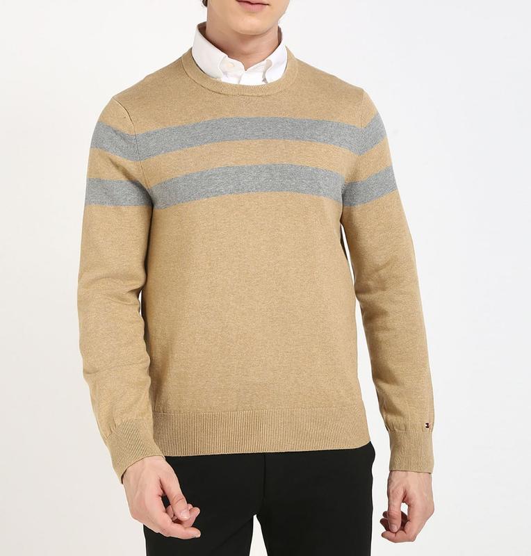 Мужской свечер touch hilfiger в полоску горчичного цвета, размер m