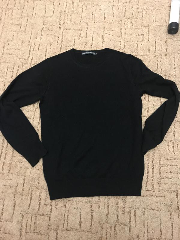 Базовый черный свитер, был надет пару раз. Состояние как после одной стирки - дефектов виде дырок, пятен и затяжек нет. ПОГ 47 тянется Длина 66 см