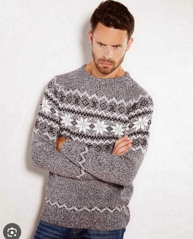 Якісний чоловічий светр різдвяний принт джемпер чоловічий вʼязаний светр зі сніжинками теп...