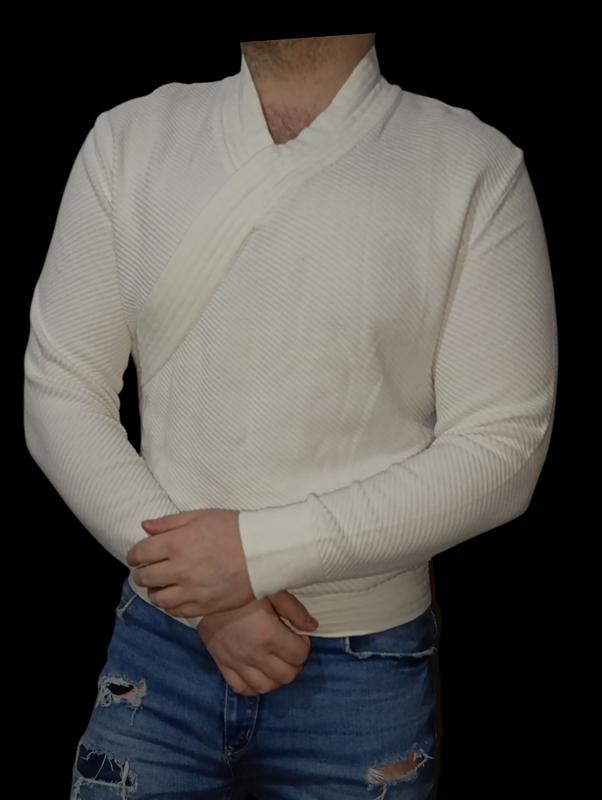 Белый свитер в идеальном состоянии. Не теплый из Хлопка.Очень красивый Плечи 49-50, ПОг 56, рукав 66, Высота 66-67 по спине