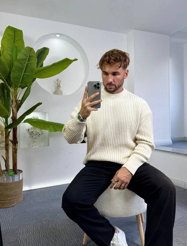 Стильный вязаный оверсайз свитер Артикул MR140 - Материал: 30% шерсть, 70% акрил - Made in Turkey 🇹🇷 , топ качество🔝 Размеры: S, M, L, XL (полмерные, оверсайз крой ) На фото размер L: ❗️Параметры парня на фото: Рост - 180 см Вес - 85 кг (при заказе обязательно указывает рост и вес для перестраховки)